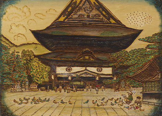 会期:2025年 10月 18日(土)~ 2026年 1月 25日(日) 会場:信州新町美術館 第二・三展示室 主催:信州新町美術館 協力:横井弘三とオモチャン会 横井 弘三(1889-1965)は、長野県飯田市に生まれ、早稲田大学商学部を中退後、独学で油絵の技術を身につけ芸術の道へ進みました。大正期初め、初出品で二科展樗牛賞を受賞、一躍画壇の寵児となり注目を浴びました。その後も二科で受賞を重ね活躍、素朴で情愛にあふれた作風で高い評価を受け、時に「日本のアンリ・ルソー」などとも呼ばれました。しかしその独創的で奔放な芸術活動が当時の画壇とは馴染まず、横井は二科会を離れ、自らアンデパンダン展を開催するなど独自の芸術を創造していきました。1944(昭和19)年、長野市へ疎開。横井の気さくで馴染みやすい人柄は信州の人々から愛され「よこいさ~ん」と親しみをもって呼ばれました。また物心両面にわたる支援も受け、そのお礼の気持ちとして横井はお世話になった方々へ絵をプレゼントしたのでした。特に、終の棲家となった長野市南県町、招聘され長期間制作に励んだ信州新町などには、今でも多くの作品が残されており、その一点一点に所有者と「よこいさ~ん」とのエピソードが詰まっています。 |
