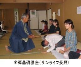 長野禅会が毎月の坐禅会を開催している会場は、長野市(指定管理者)の「サンライフ長野」という中高齢者健康福祉施設です。この会場「サンライフ長野」では、市の広報機関誌で受講生を募集していくつもの講座を開設しています。